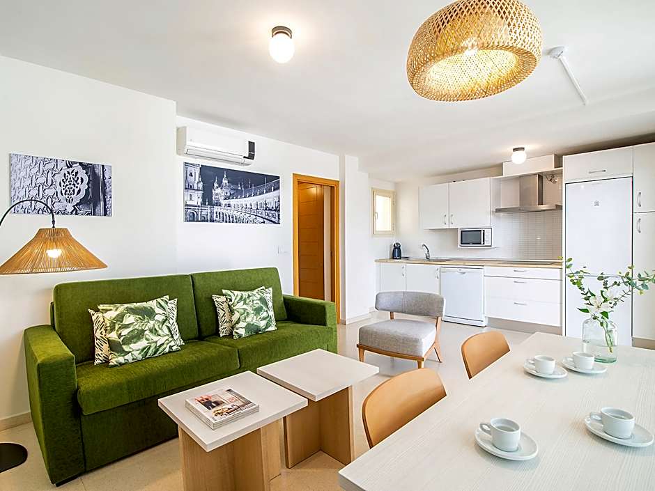 This bright and modern apartment has air conditioning. The room may have 1 double bed or 2 single beds. There is a lounge with flat-screen TV and sofa bed, a fully equipped kitchenette with fridge, hob and microwave, and a private bathroom. A safe is available at an extra cost.